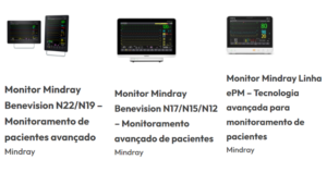 Equipamentos como os monitores Mindray ePM 12/15 Modular e BeneVision N17/N15/N12 oferecem precisão, flexibilidade e integração facilitada com outros dispositivos hospitalares, proporcionando uma visão completa do estado do paciente durante a cirurgia.