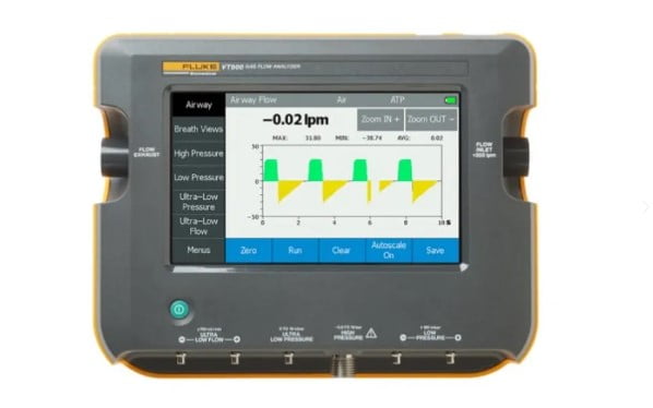 O VT900 é o analisador de fluxo de gás premium de alta precisão da Fluke Biomedical. O canal de fluxo de ar de ±300 lpm, de alcance total, oferece medições de oxigênio, temperatura e umidade integradas para otimizar o procedimento de teste e compensar as condições do ambiente de forma automática. A ampla memória integrada do VT900 permite a gravação em curto e em longo prazo e o armazenamento de dados de testes.